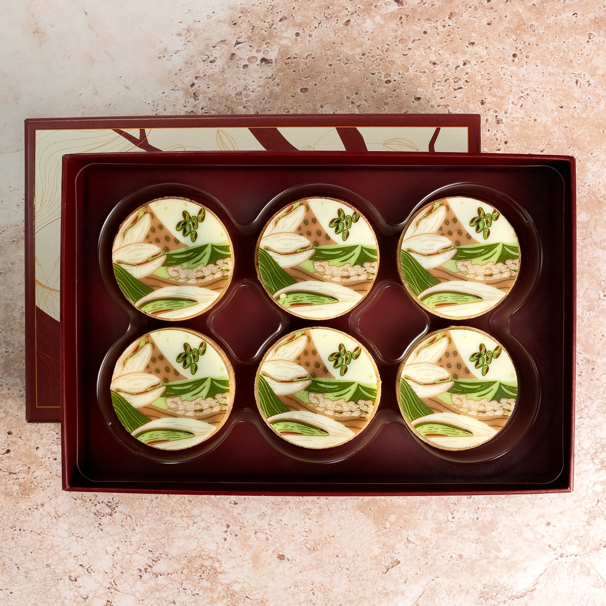 Coffret Estézia composé de 12 biscuits fourrés & décorés saveur Pistache.